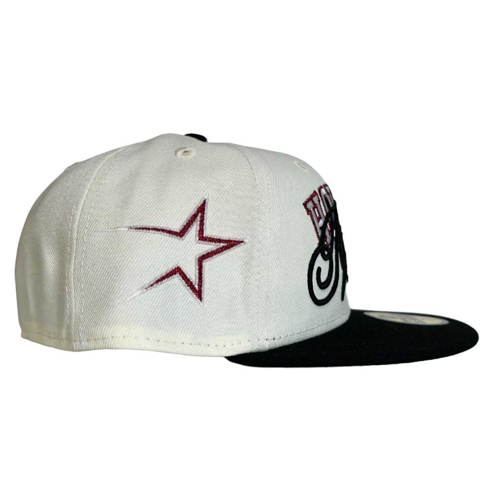 D BOY Houston Astros New Era Hat 5950 Fitted Ivory Black Red with Whatafitted "Still Holdin'" Blip